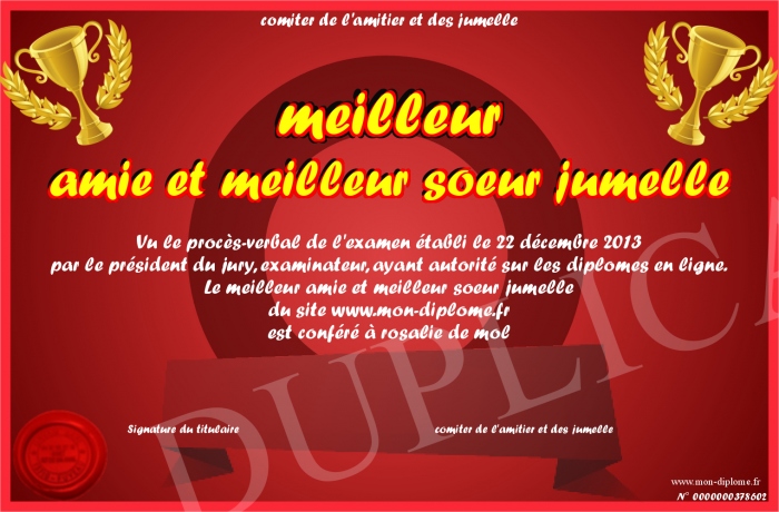 Envoyez par email votre meilleur amie et meilleur soeur jumelle personalisé