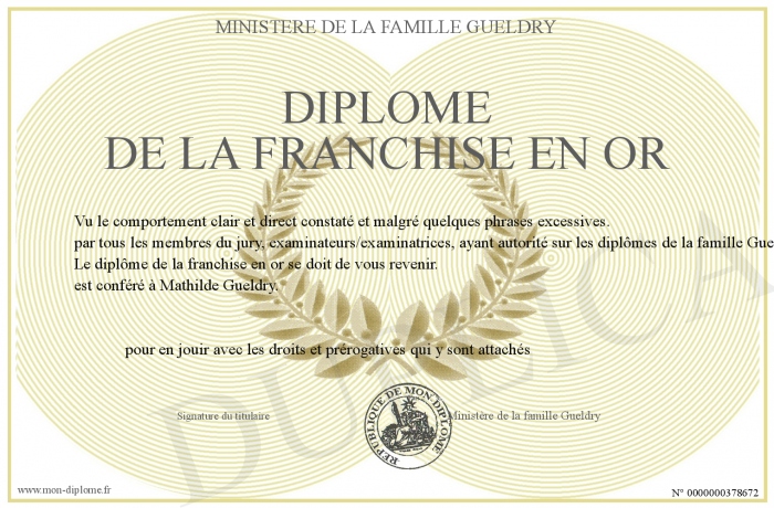 Envoyez par email votre Diplôme de la franchise en or personalisé