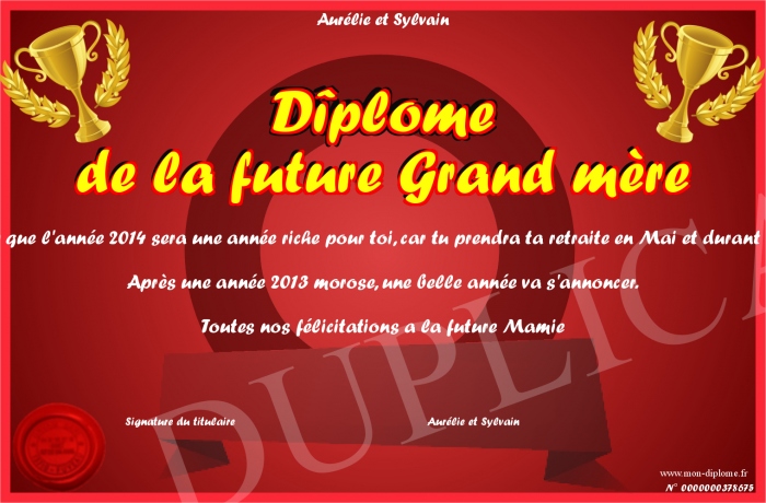 Envoyez par email votre Dîplome de la future Grand mère personalisé