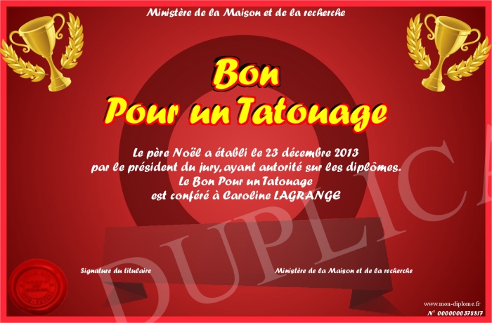 Envoyez par email votre Bon Pour un Tatouage personalisé