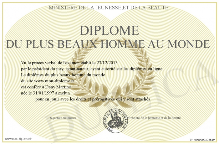Envoyez par email votre diplôme du plus beaux homme au monde personalisé