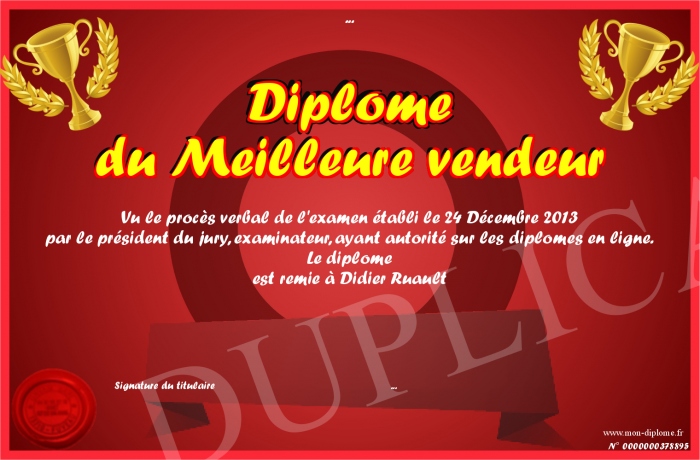Envoyez par email votre Diplôme du Meilleure vendeur personalisé