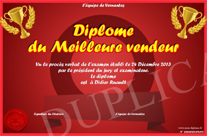 Envoyez par email votre Diplôme du Meilleure vendeur personalisé