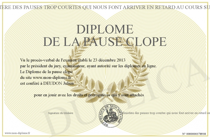 Envoyez par email votre Diplôme de la pause clope personalisé