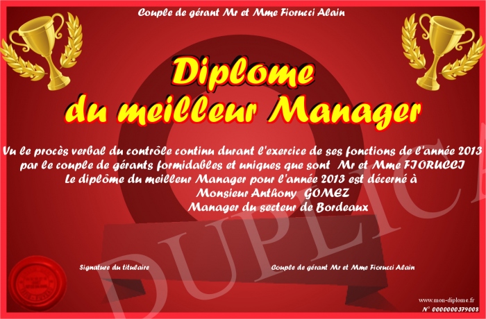 Envoyez par email votre Diplôme du meilleur Manager personalisé