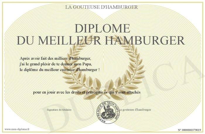 Envoyez par email votre Diplôme du meilleur Hamburger personalisé