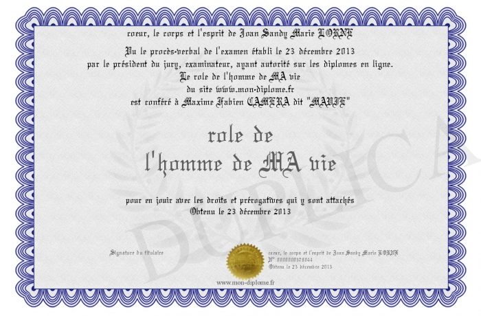 Envoyez par email votre role de l'homme de MA vie personalisé