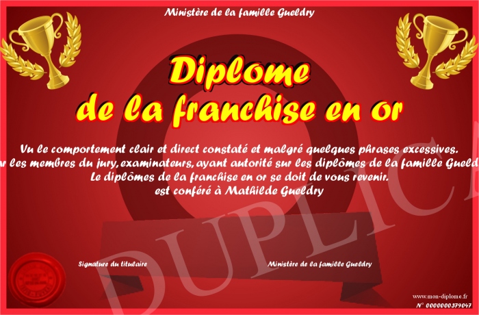 Envoyez par email votre Diplôme de la franchise en or personalisé