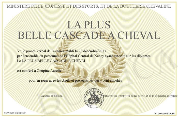 Envoyez par email votre LA PLUS BELLE CASCADE A CHEVAL personalisé
