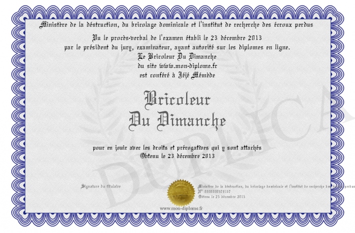 Envoyez par email votre Bricoleur Du Dimanche personalisé