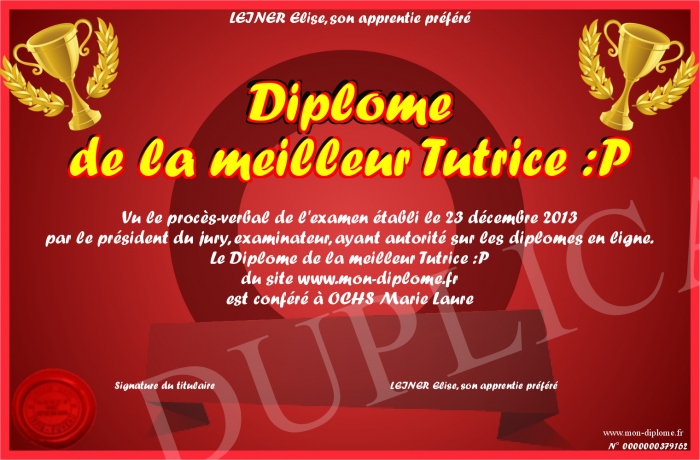 Envoyez par email votre Diplôme de la meilleur Tutrice :P personalisé