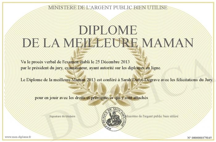 Envoyez par email votre Diplôme de la meilleure Maman personalisé