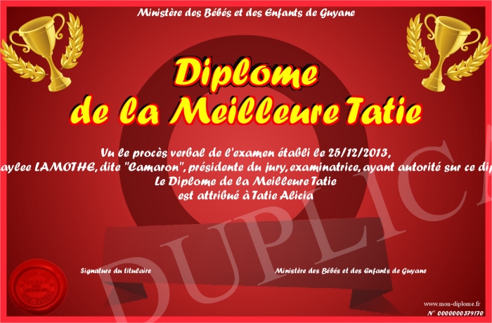 Envoyez par email votre Diplôme de la Meilleure Tatie personalisé