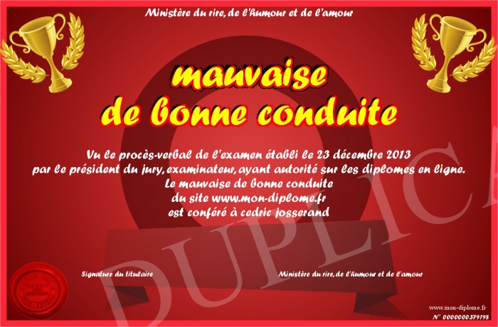 Envoyez par email votre mauvaise de bonne conduite personalisé