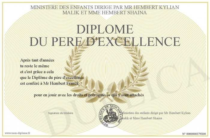 Envoyez par email votre Diplôme du père d'excellence personalisé
