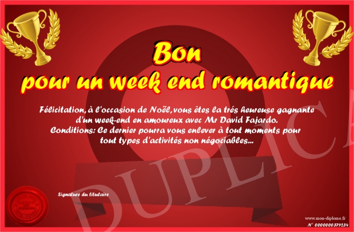 Envoyez par email votre Bon pour un week end romantique personalisé
