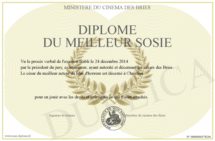 Envoyez par email votre Diplôme du meilleur sosie personalisé