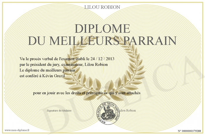 Envoyez par email votre Diplôme du meilleurs parrain personalisé