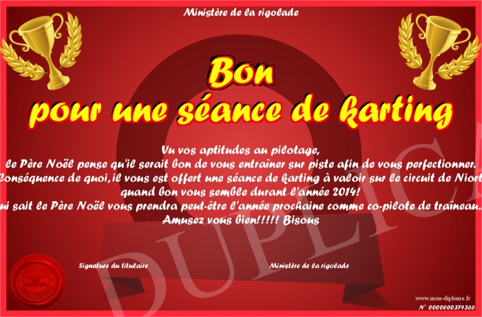 Envoyez par email votre Bon pour une séance de karting personalisé