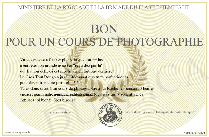 Envoyez par email votre Bon pour un cours de Photographie personalisé