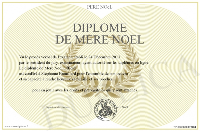 Envoyez par email votre Diplôme de MERE NOEL personalisé