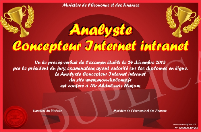 Envoyez par email votre Analyste Concepteur Internet intranet personalisé