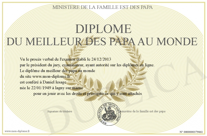 Envoyez par email votre diplôme du meilleur des papa au monde personalisé