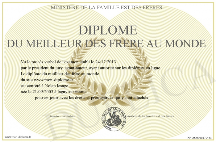 Envoyez par email votre diplôme du meilleur des frère au monde personalisé