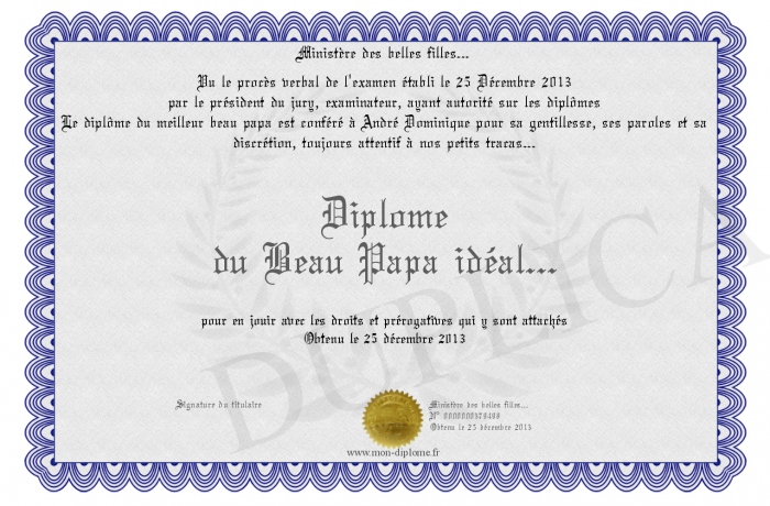 Envoyez par email votre Diplôme du Beau Papa idéal... personalisé