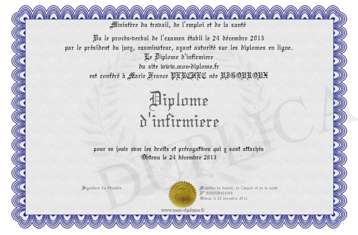 Envoyez par email votre Diplome d'infirmiere personalisé