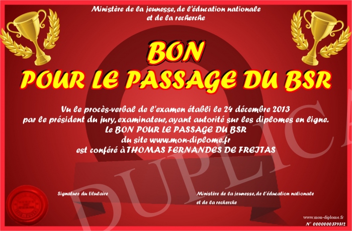 Envoyez par email votre BON POUR LE PASSAGE DU BSR personalisé