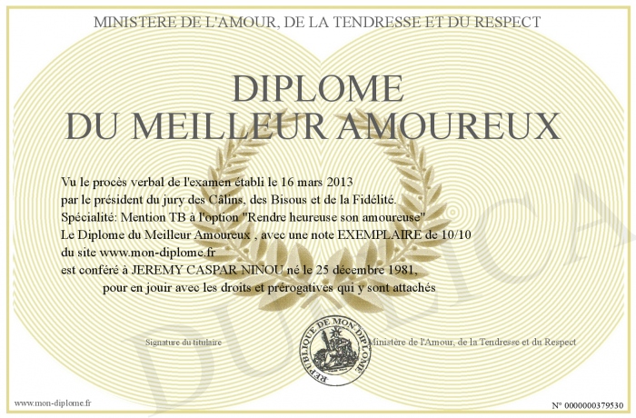 Envoyez par email votre Diplôme du Meilleur Amoureux personalisé