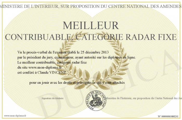 Envoyez par email votre meilleur contribuable, catégorie radar fixe personalisé