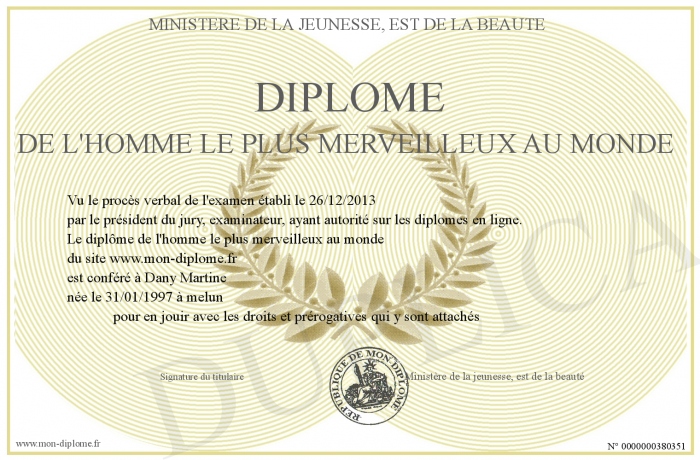 Envoyez par email votre Diplôme de l'homme le plus merveilleux au monde personalisé