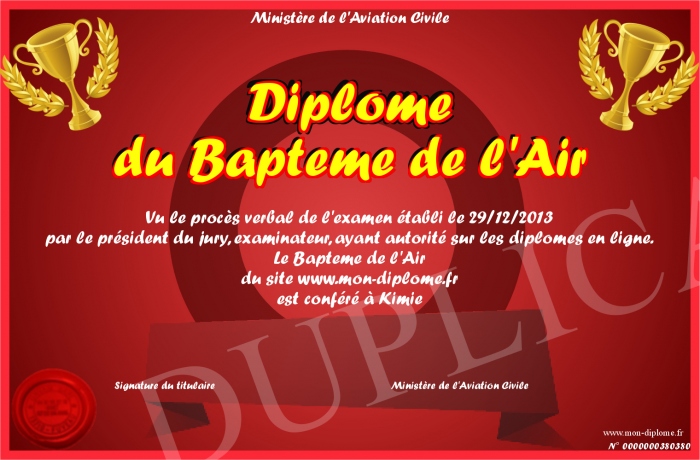 Envoyez par email votre Diplôme du Bapteme de l'Air personalisé