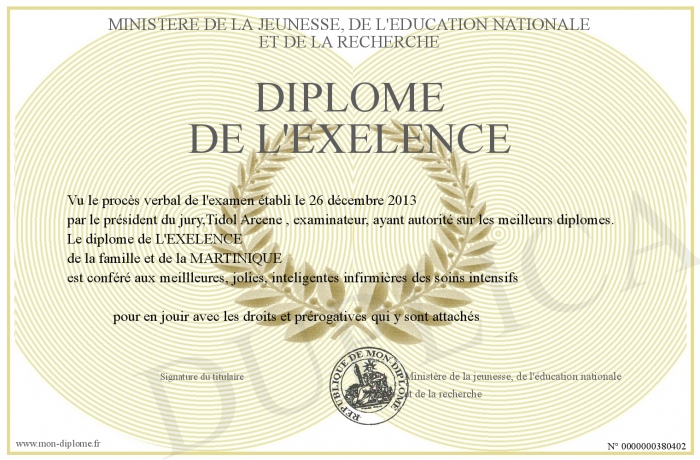 Envoyez par email votre Diplôme de l'exelence personalisé