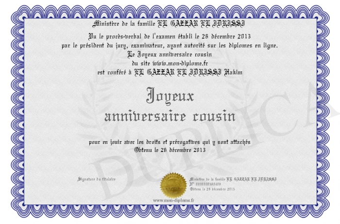 Envoyez par email votre Joyeux anniversaire cousin personalisé