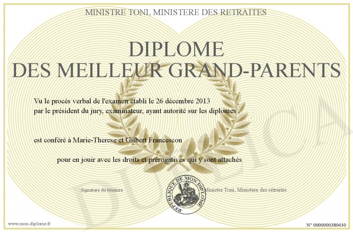 Envoyez par email votre Diplôme des Meilleur Grand-parents personalisé
