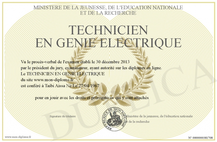 Envoyez par email votre TECHNICIEN EN GENIE ELECTRIQUE personalisé