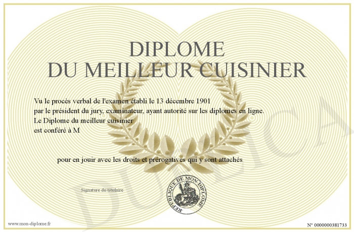 Envoyez par email votre Diplôme du meilleur cuisinier personalisé