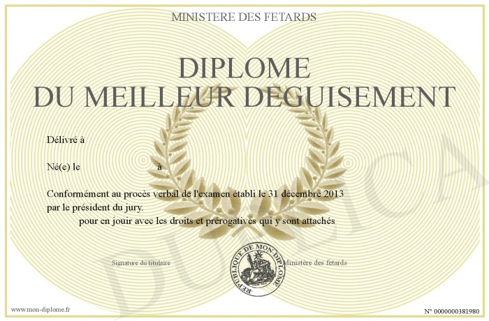 Envoyez par email votre Diplôme du meilleur déguisement personalisé
