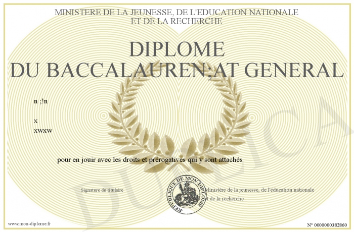 Envoyez par email votre Diplôme du baccalauren;at général personalisé