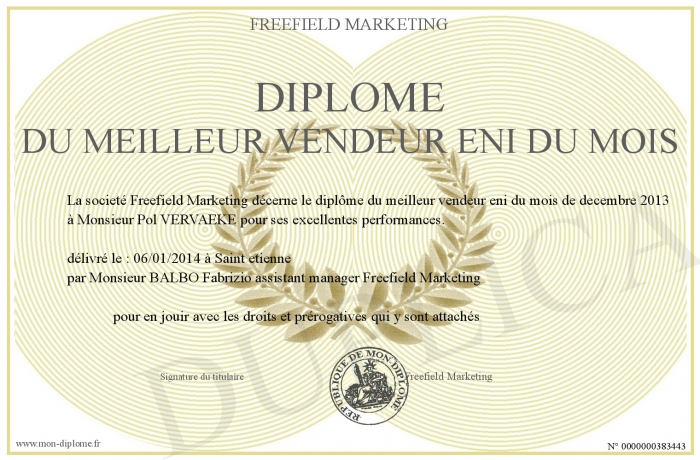 Envoyez par email votre Diplôme du meilleur vendeur eni du mois personalisé