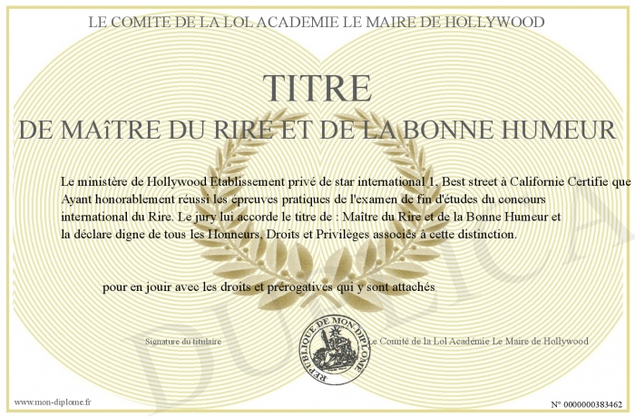 Envoyez par email votre titre de Maître du rire et de la bonne humeur personalisé