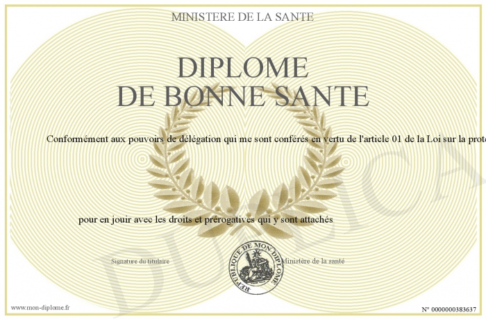 Envoyez par email votre diplôme de bonne santé personalisé