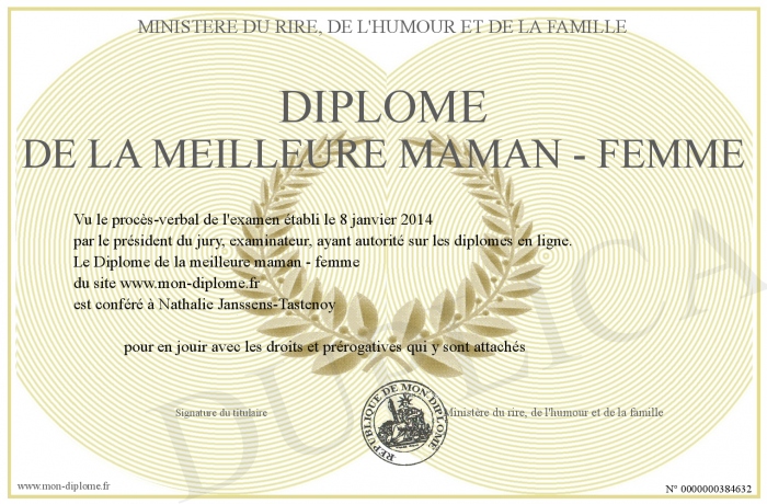 Envoyez par email votre Diplome de la meilleure maman - femme personalisé