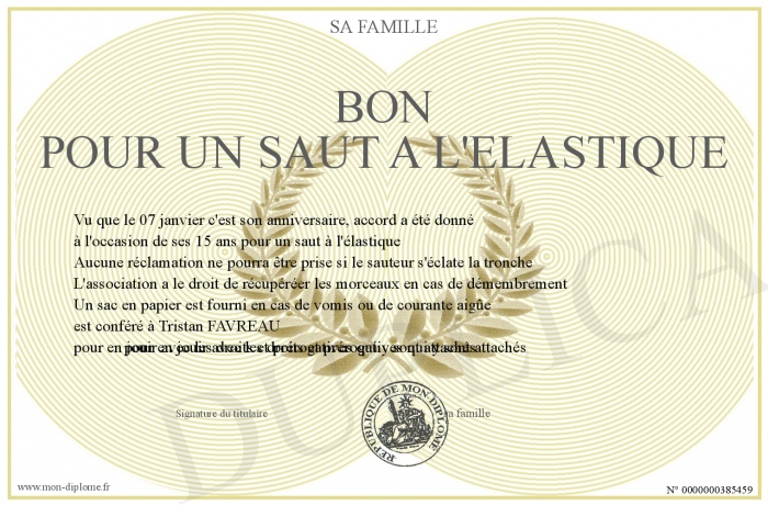 Envoyez par email votre BON POUR UN SAUT A L'ELASTIQUE personalisé