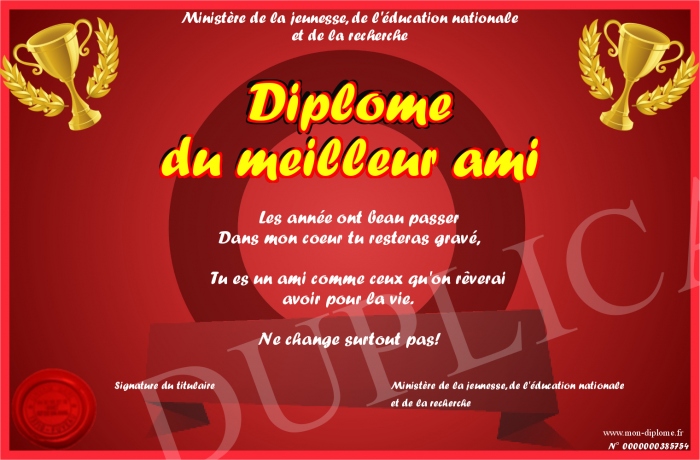 Envoyez par email votre Diplôme du meilleur ami personalisé