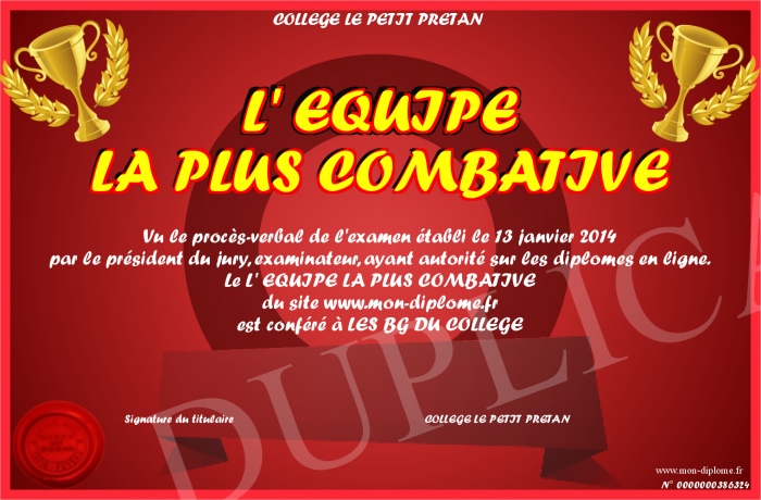 Envoyez par email votre L' EQUIPE LA PLUS COMBATIVE personalisé