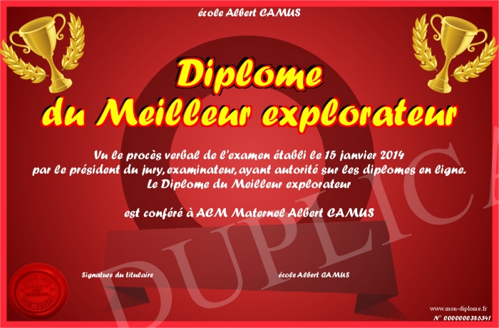 Envoyez par email votre Diplôme du Meilleur explorateur personalisé